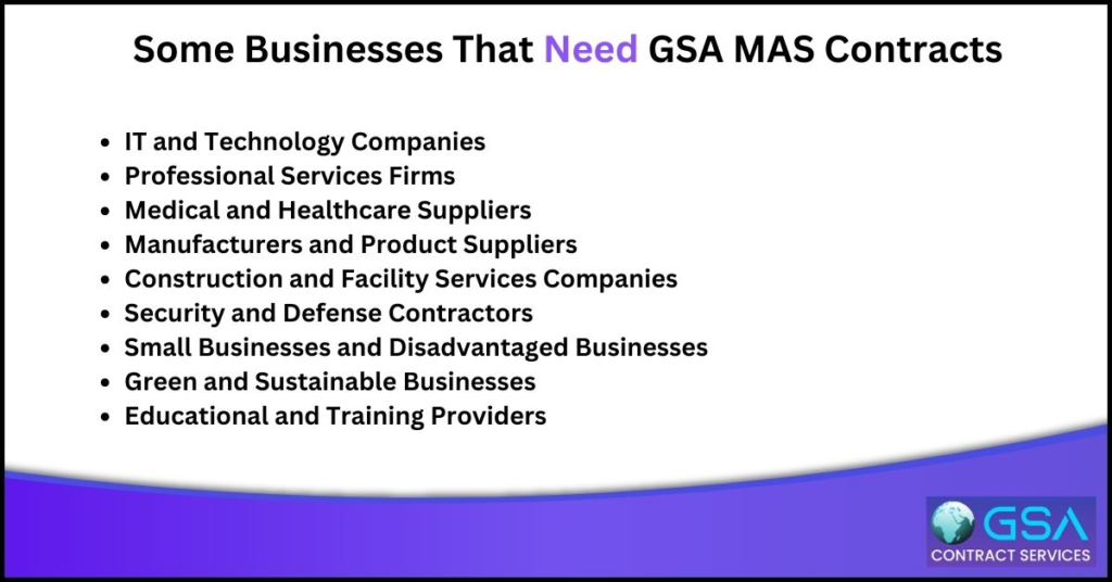 A GSA MAS contract isn’t for everyone—but for the right businesses, it’s a gateway to billions of dollars in federal spending. IT providers, professional services firms, healthcare suppliers, manufacturers, construction companies, security contractors, small businesses, and green solution providers all benefit from the simplified procurement, visibility, and credibility it offers.